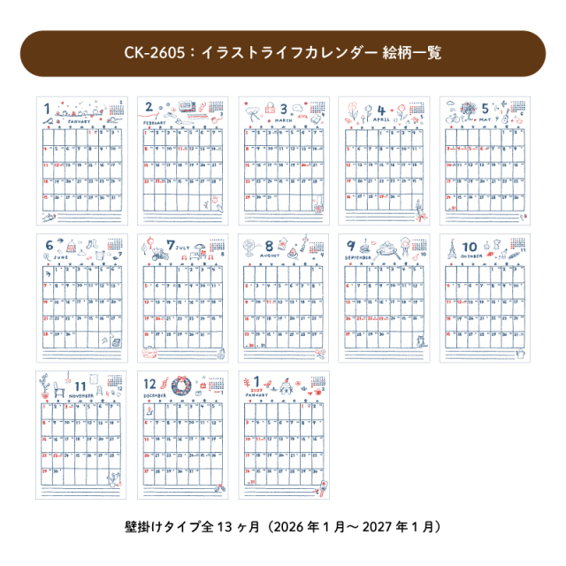 | 商品名 | 2026年度カレンダー イラストライフカレンダー |
