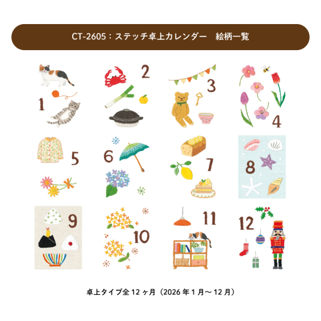 卓上タイプ全12ヶ月(2026年1月~12月) stitched by Yoko Fujiki |