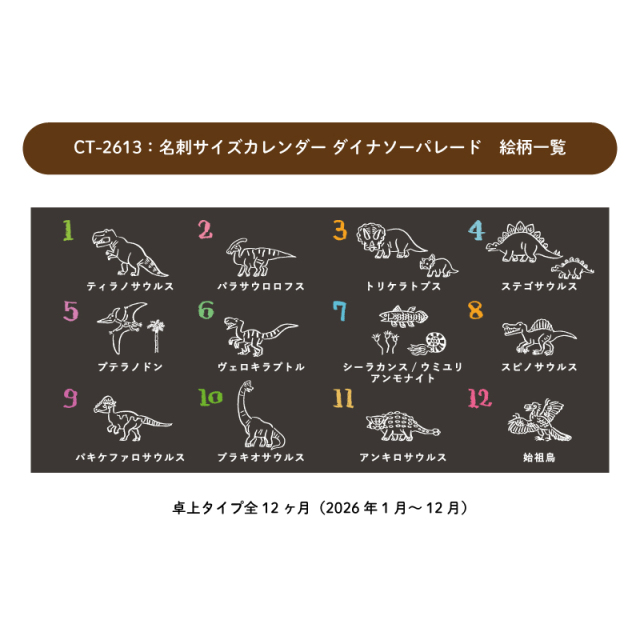 | 商品名 | 2026年度カレンダー 月曜始まり 名刺サイズカレンダー ダイナソーパレード |