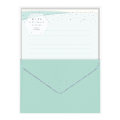 便箋と封筒に星くずをイメージしたホログラム箔が散りばめられたレターセット。 3種の形の異なる便箋は重ねることで風景のように見え、夜明け・朝・午後・夜をイメージした色の変化を楽しむことができます。 |