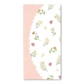 手触り感のある和紙素材で作られた横開きの金封です。 レース風の加工と愛らしいイラストが柔らかな印象に仕上がっています。 お札だけじゃなく、ギフト券や商品券などを渡すのにもおススメです。 文字部分とイラストの一部は金箔加工になっています。 |