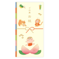 日本の昔話「桃太郎」をモチーフに、桃太郎のようにすくすくと健やかな成長と幸せを願い、誕生の喜びをやさしく包み込む、たとう折りの金封です。 文字部分とイラスト部分には、細やかな金箔加工とエンボス加工が施されています。 |