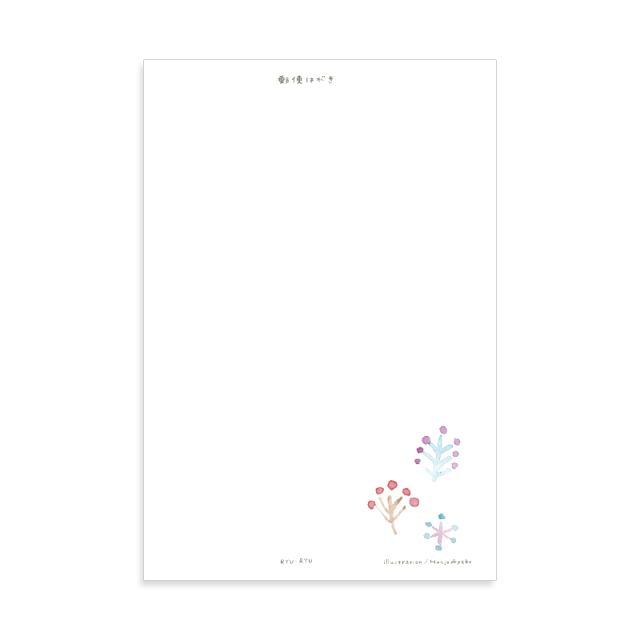 年賀状のお返事や季節の挨拶状としてお使い頂ける寒中ハガキ。 冬をイメージしたイラストが水彩で描かれています。 |