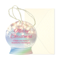 付属のメッセージカードと一緒にプレゼントとして贈れたり、クリスマスプレゼントのラッピングやクリスマスツリーのオーナメントにも使えます。 見る角度によって色が変化する、ホログラム箔が施された透明素材のタグカードです。 こちらのカードはスノードームの雪が舞うようにホログラム箔が施されています。 |